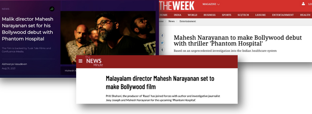 Josy Joseph, Founder of Confluence Media, said: "The strange thing about India is that its real stories are far more dramatic than any that a writer can imagine up, but those have not been harnessed enough for visual storytelling. I am confident that Phantom Hospital will be a pathbreaking movie that will showcase Mahesh's mastery over the craft and Priti's capability to see through challenging projects. "